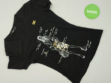 Damska koszulka z krótkim rękawem, czarna, ze zdobieniami 3D - Fason: dopasowany T‑shirt z okrągłym dekoltem - Kolor: czarny - Grafika/przód: duży nadruk postaci z elementami 3D – cekiny, koraliki...Stan: