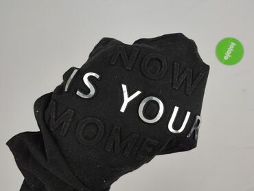T-shirt damski Sinsay - Rozmiar: XS (z metki) - Kolor: czarny - Wzór: jasne listki rozmieszczone na całej powierzchni - Krój: klasyczny, z krótkim rękawem i okrągłym dekoltem - Materiał: miękka, e...Czarna koszulka Sinsay, rozmiar XS. Klasyczny krój z krótkim rękawem i okrągłym dekoltem. Z przodu napis „NOW IS YOUR MOMENT” – część liter w wypukłym, matowym nadruku, część w srebrnym, połyskującym wykończeniu dla efektu 3D. Lekka, miękka dzianina bawełniana idealna na co dzień. Minimalistyczny, uniwersalny styl pasujący do jeansów, szortów i spódnic.