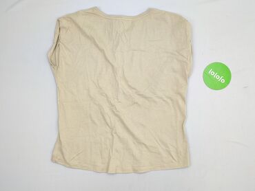 Beżowy T-shirt damski, rozmiar M. - Fason: klasyczny, prosty krój z okrągłym dekoltem i krótkim rękawem - Kolor: jednolity, jasny beż/nude - Materiał: miękka, cienka dzianina bawełniana z domieszk...