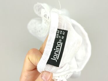 Ażurowa bluzka JANINA - Marka: Janina - Rozmiar z metki: EUR 40 / PL 42 - Kolor: miętowy (pastelowa zieleń) - Krój: T‑shirt z dekoltem V, krótkie rękawy - Materiał (z metki): 95% poliester, 5% ela...