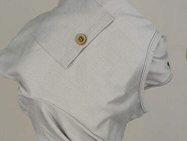 Szara koszulka damska z krótkim rękawem. - Fason dopasowany, długość do bioder - Dekolt szeroki, półokrągły - Ozdobna listwa na przodzie z drobnymi plisowaniami - Zapięcie z przodu na 6 małych guzi...