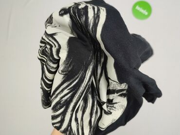 T-shirt damski czarny Antopa, rozmiar M/L (metka: ML). - Luźny, asymetryczny krój z obniżoną linią ramion. - Przód zdobi duży nadruk/apaszka z wizerunkiem maski w czerwonej kapturze (motyw inspir...