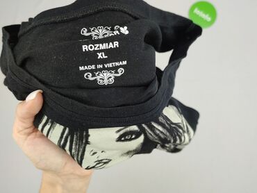 Czarna damska koszulka z krótkim rękawem i okrągłym dekoltem. Z przodu nadruk „GIRL” białą czcionką, po bokach czerwone usta. Gładki tył bez nadruku. - Rozmiar: XL (na metce) - Skład: 95% polieste...