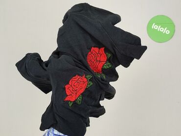 Czarna koszulka damska z krótkim rękawem, zdobiona haftowanymi czerwonymi różami rozmieszczonymi z przodu. Klasyczny, okrągły dekolt. Miękki, cienki dżersej bawełniany (skład z metki nieczytelny – ...