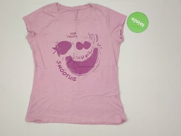 T-shirt damski Beloved Woman - Rozmiar: 3XL (z metki) - Kolor: jasnoróżowy - Krój: luźny, z krótkim rękawem i okrągłym dekoltem - Nadruk z przodu: motyw owoców i napis „100% FRUIT”, „FRESH”, „SMOO...