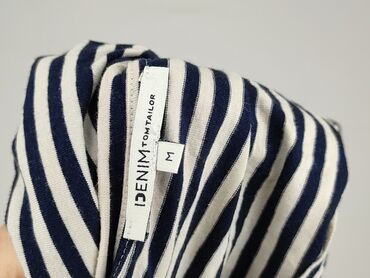 Koszulka damska Tom Tailor Denim - Model: t-shirt z krótkim rękawem - Rozmiar: M (metka) - Kolor: granatowy z białymi, poziomymi paskami (motyw marynistyczny) - Detale: mały czerwony haft – kotwic...