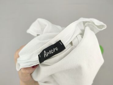 Biała koszulka damska z krótkim rękawem - Krój: dopasowany, z głębokim, zaokrąglonym dekoltem - Zapięcie: krótka listwa z trzema guzikami z przodu - Rozmiar z metki: L (WOMEN) - Materiał: cienka, ...