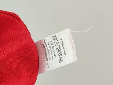 Czerwona koszulka damska C&A, rozmiar S. - Fason: krótki rękaw, swobodny krój - Dekolt: stójka z marszczoną/falbankową listwą, zapinana/rozchylana z przodu - Materiał: 100% bawełna (metka producen...