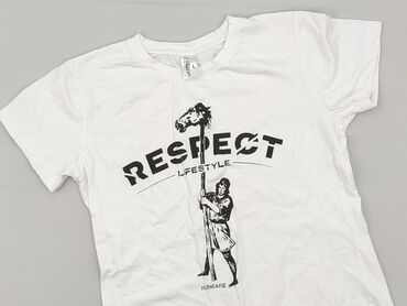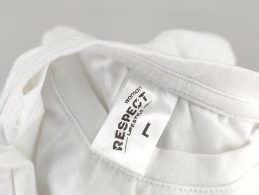Koszulka damska Reserved - Marka: Reserved (etykieta „LET’S BE BEAUTIFUL”) - Rozmiar z metki: L - Kolor: biały - Krój: klasyczny T‑shirt z okrągłym dekoltem i krótkim rękawem - Nadruk: duży czarno...