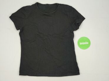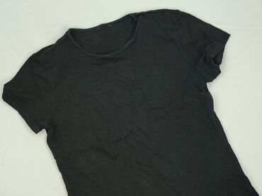 Czarna damska koszulka z krótkim rękawem - Fason: klasyczny T-shirt, lekko taliowany - Dekolt: okrągły, dość szeroki - Rękaw: krótki - Kolor: czarny, jednolity - Materiał: miękka, elastyczna dzian...
