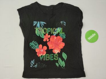 Koszulka damska Esmara - Kolor: czarny - Nadruk z przodu: napis „Vacay Mode” + motyw tropikalnych liści i kwiatów; poniżej drobny napis „Discover your own paradise” - Krój: z krótkim rękawem, deko...
