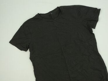 Czarna bluzka damska z krótkim rękawem - Fason: luźny, prosta linia, lekko zaokrąglony dół - Rękawy: krótkie, szerokie - Dekolt: okrągły - Materiał: cienka, miękka dzianina (wygląda na bawełnianą ...