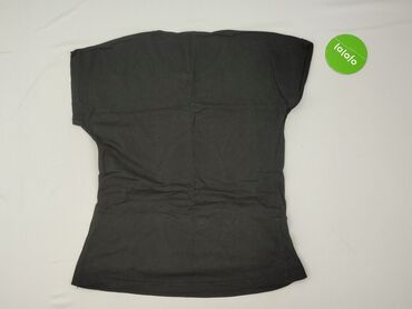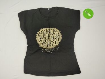 Czarna bluzka damska z krótkim rękawem - Fason: luźny, prosta linia, lekko zaokrąglony dół - Rękawy: krótkie, szerokie - Dekolt: okrągły - Materiał: cienka, miękka dzianina (wygląda na bawełnianą ...