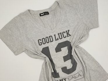 Szara damska koszulka Latynka z nadrukiem „London – United Kingdom”. - Marka: Latynka - Rozmiar z metki: M/L - Krój: lekko dopasowany, z krótkim rękawem i okrągłym dekoltem - Kolor: jasny szary me...Stan: