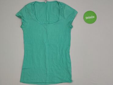 T-shirt damski, mint/turkus - Krój: dopasowany, z krótkim rękawem - Dekolt: szeroki, półokrągły - Kolor: miętowy/turkus - Materiał: cienka, miękka dzianina bawełniana z dodatkiem elastanu (rozciąg...