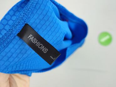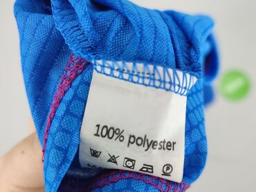 Damska koszulka sportowa FASHIONS - Rozmiar: L - Materiał: 100% poliester (metka) - Kolor: fioletowy z subtelnym heksagonalnym wzorem; kontrastowe, płaskie szwy w kolorze niebieskim - Krój: krótki...