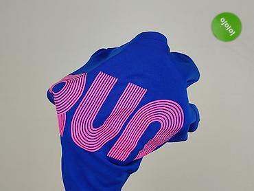 Damska koszulka sportowa FASHIONS - Rozmiar: L - Materiał: 100% poliester (metka) - Kolor: fioletowy z subtelnym heksagonalnym wzorem; kontrastowe, płaskie szwy w kolorze niebieskim - Krój: krótki...