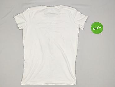 Koszulka damska z krótkim rękawem, biała, z przodu złoty nadruk „GUCCI” i podwójne G z brokatowym połyskiem. - Rozmiar: L (na metce) - Krój: klasyczny T‑shirt, okrągły dekolt - Materiał: 95% baweł...