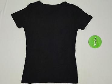 Czarna damska koszulka z krótkim rękawem - Fason: klasyczny T-shirt, lekko taliowany - Dekolt: okrągły, dość szeroki - Rękaw: krótki - Kolor: czarny, jednolity - Materiał: miękka, elastyczna dzian...