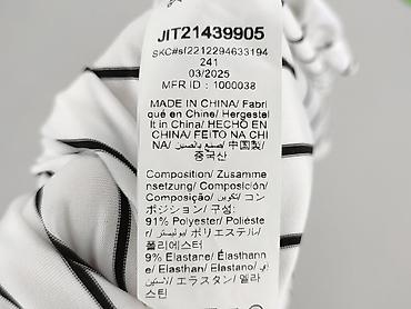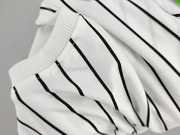 - Wzór: pionowe czarne paski na białym tle; z przodu subtelny nadruk z podpisem; przy dole mała naszywka z napisem