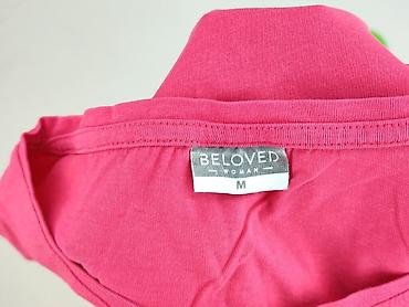 T-shirt damski Beloved Woman - Kolor: jasny róż - Rozmiar z metki: L - Fason: przedłużony tył z zaokrąglonym dołem, krótki rękaw, okrągły dekolt - Materiał (z metki): przewiewna dzianina bawełnian...