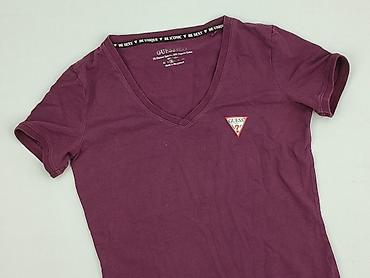 Fioletowa koszulka damska z krótkim rękawem - Krój: regular, dopasowany do sylwetki, okrągły dekolt - Materiał: miękki, cienki dżersej bawełniany z domieszką (na metce wewnętrznej nadruk „Regular”...