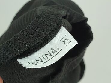 T-shirt damski Janina - Rozmiar: XS (z metki) - Krój: klasyczny, z krótkim rękawem - Dekolt: okrągły - Wzór: biało-czarne, poziome paski - Materiał: 95% bawełna, 5% elastan – miękki, elastyczny i ...Stan: