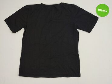 Czarna koszulka damska z krótkim rękawem - Krój: klasyczny T‑shirt, okrągły dekolt - Rozmiar z metki: L - Marka na metce: F&F - Materiał: miękka, elastyczna dzianina bawełniana z domieszką (inform...