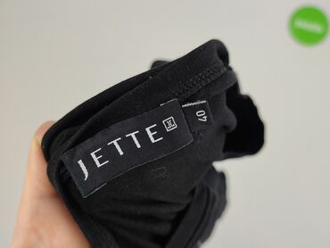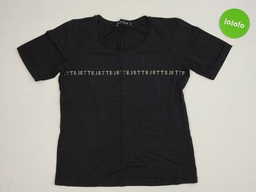 Czarna koszulka damska z krótkim rękawem - Klasyczny T‑shirt, gładki, bez nadruków - Fason: dopasowany, okrągły dekolt (crew neck) - Rękawy krótkie - Materiał: dzianina bawełniana z dodatkiem elas...Czarna damska koszulka Jette z dekoltem okrągłym. Na przodzie znajduje się błyszczący, srebrny napis "JETTE". Wykonana z mieszanki bawełny, modalu i elastanu, co zapewnia wygodę noszenia. Krótkie rękawy sprawiają, że idealnie nadaje się na ciepłe dni lub jako element warstwowy.