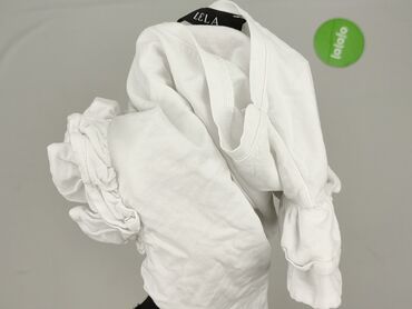 Biała bluzka damska z krótkim rękawem - Kolor: biały - Krój: luźny, lekko skrócony (dół zakończony szerszym ściągaczem) - Dekolt: okrągły - Rękawy: krótkie, opadające - Rozmiar z metki: L (Women) ...