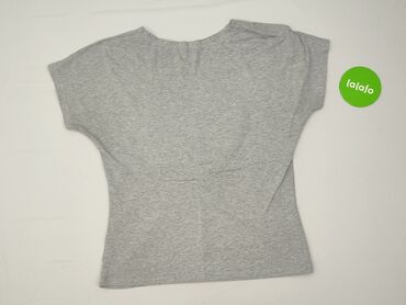 Damska bluzka/T-shirt z krótkim rękawem - Kolor: jasnoszary melanż - Rozmiar z metki: L (WOMEN) - Krój: luźny, okrągły dekolt - Rękawy: krótkie, ozdobione koronkowymi aplikacjami w kolorze pudrowe...