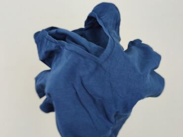 Bluzka w paski – damska - Krój: prosty, lekko luźny, delikatnie przedłużony dół - Rękaw: krótki z podwinięciem - Dekolt: okrągły - Wzór: poziome białe i kobaltowe paski - Materiał: miękka, elastyc...