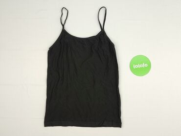 Czarna damska koszulka na ramiączkach (top) - Klasyczny, dopasowany krój - Okrągły dekolt - Szerokie ramiączka - Gładki, jednolity materiał w kolorze czarnym - Miękka, elastyczna dzianina – komfor...Stan:
