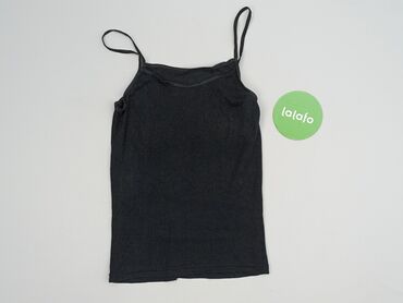 Czarna damska koszulka na ramiączkach (tank top) - Fason: dopasowany, klasyczny top bez wzorów - Dekolt: zaokrąglony - Ramiączka: średniej szerokości - Kolor: czarny, jednolity - Materiał: miękka,...