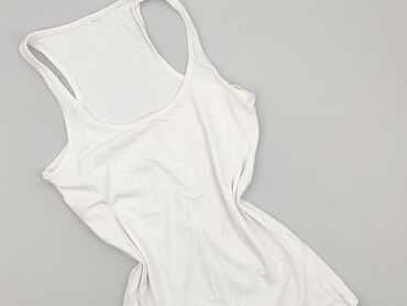 Biała damska koszulka bez rękawów (tank top) - Kolor: biały - Krój: sportowy, z wycięciem typu bokser na plecach - Dekolt: okrągły - Długość: standardowa, za biodra - Materiał: cienka, miękka dzia...Stan: