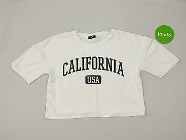 Biała koszulka damska z nadrukiem „CALIFORNIA USA”.