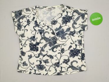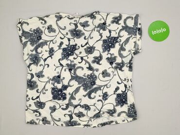 Bluzka damska z krótkim rękawem – rozmiar XL - Kolorystyka: biały w niebieski, roślinny/kwiecisty wzór na całej powierzchni - Krój: lekko luźny, z zaokrąglonym dekoltem i delikatnie opuszczonymi r...