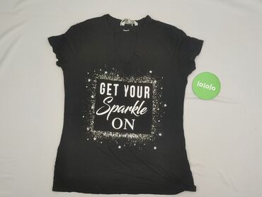 Czarna koszulka damska Peacocks - Marka: Peacocks - Rozmiar z metki: 16 (UK) - Fason: T‑shirt z krótkim rękawem, okrągły dekolt - Detal: marszczenie pośrodku przodu, lekko zaokrąglony dół - Materi...