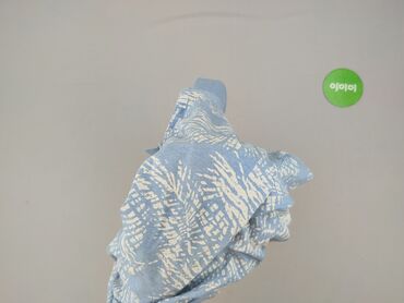 - Kolor i wzór: jasny błękit z białym, tropikalnym/roślinnym nadrukiem all-over