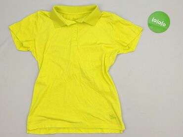 Żółta, prążkowana bluzka damska z kołnierzykiem - Fason: dopasowana, elastyczna, z krótkim rękawem - Dekolt: polo zapinany na jeden guzik - Materiał: cienka, rozciągliwa dzianina w pionowe prążki ...