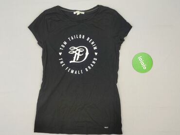 Koszulka damska TOM TAILOR DENIM - Kolor: czarny - Nadruk z przodu: “TOM TAILOR DENIM – ESTABLISHED DENIM BRAND” (biały napis na czerwonym prostokącie + biały pod spodem) - Krój: z krótkim rękawem...