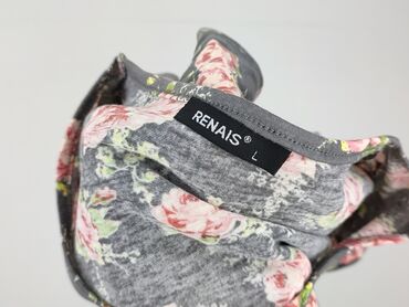 T-shirt damski Reserved, rozmiar L - Kolor: jasnoszary melanż - Krój: luźny, z krótkim rękawem typu kimono, okrągły dekolt - Przód: gładki panel z satynowym połyskiem z kolorowym, akwarelowym nadr...Bluzka damska RENAI’S, rozmiar L