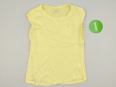 Damska koszulka marki Sinsay w kolorze żółtym, idealna do codziennego noszenia. Dekolt w kształcie litery U oraz krótki rękaw zapewniają swobodę i komfort. Na lewej piersi znajduje się mała kieszon...