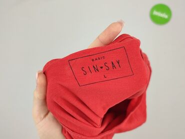 Czerwona koszulka Sinsay - Marka: Sinsay - Rozmiar: L (na metce) - Fason: klasyczny T-shirt z okrągłym dekoltem - Rękaw: do łokcia/krótszy - Materiał: dzianina prążkowana (rozciągliwa, miękka w do...