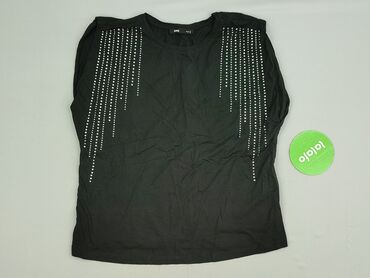 Czarna koszulka damska Sinsay, rozmiar S. - Klasyczny krój z okrągłym dekoltem i krótkim rękawem - Na przodzie kieszonka ozdobiona drobnymi perełkami/dżetami w różnych rozmiarach - Gładki tył - Mi...