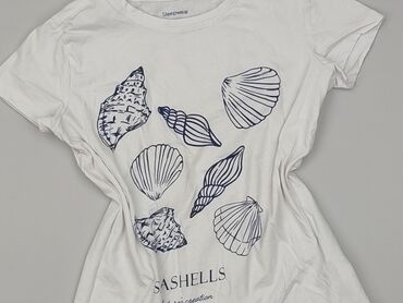 Biała koszulka damska Sinsay - Rozmiar: XXS (z metki) - Krój: klasyczny T-shirt z krótkim rękawem i okrągłym dekoltem - Kolor: biały - Nadruk/aplikacja: grafika koralowca z drobnymi perełkami oraz...