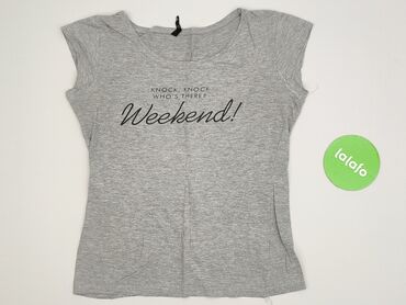 T-shirt damski Sinsay, rozmiar S. - Kolor: biały - Fason: klasyczny, z krótkim rękawem i okrągłym dekoltem - Wzór: all-over z czarnymi napisami nazw miast (m.in. Paris, London, Berlin, Dubai) - Ma...