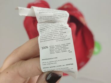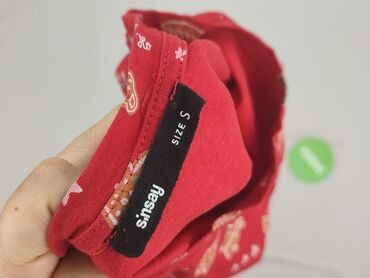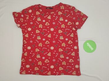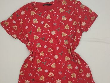 Czerwona koszulka damska Sinsay Basic - Rozmiar: XS (z metki) - Krój: dopasowany, z delikatnie przedłużonym dołem i krótkim rękawem typu cap - Dekolt: okrągły - Wzór: drobne, czarne motywy świątec...