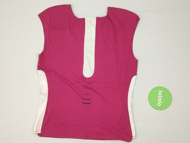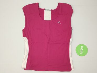 Różowa koszulka sportowa Domyos (Decathlon) - Przewiewny, lekki materiał syntetyczny z wytłaczanym geometrycznym wzorem - Krój luźny, z krótkim rękawem i zaokrąglonym dołem - Dekolt okrągły; z tył...