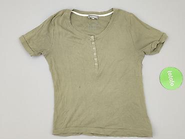 T-shirt damski, khaki/oliwkowy - Krój: klasyczny, lekko dopasowany - Rękaw: krótki - Dekolt: okrągły - Długość: standardowa do bioder - Materiał: cienka, miękka dzianina bawełniana z domieszką ela...